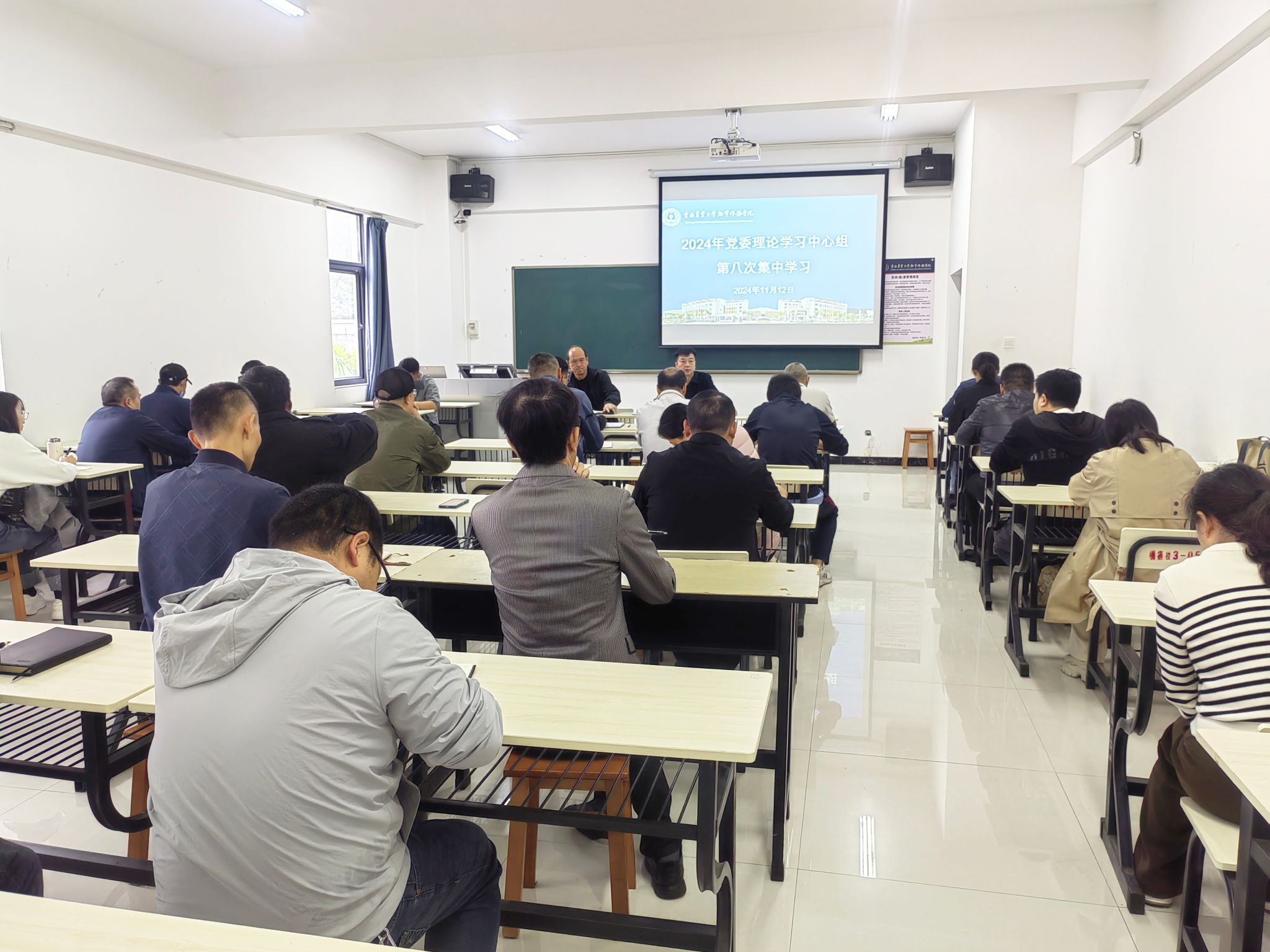 11月12日上午,bat365中文官方网站理论学习中心组在明德楼305组织召开第八次集中学习,专题学习习近平总书记在省部级主要领导干部学习贯彻党的二十届三中全会精神专题研讨班开班式上的重要讲话精神,学院中层及以上领导干部参加会议,会议由党委书记杜华波主持。
