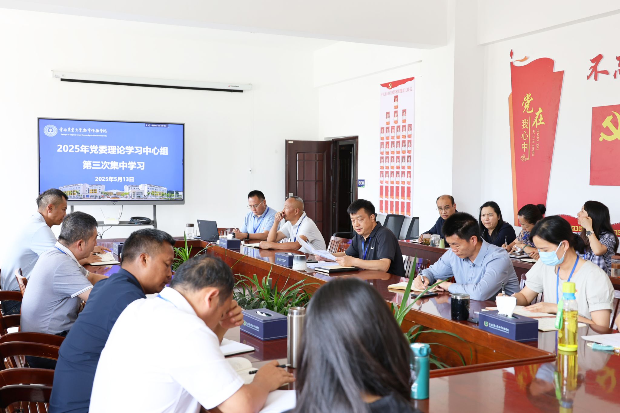 2025年5月13日,bat365中文官方网站组织并开展2025年第三次党委理论学习中心组集中学习,学院领导班子、科级干部、党支部书记参加学习。会议由党委书记杜华波主持。