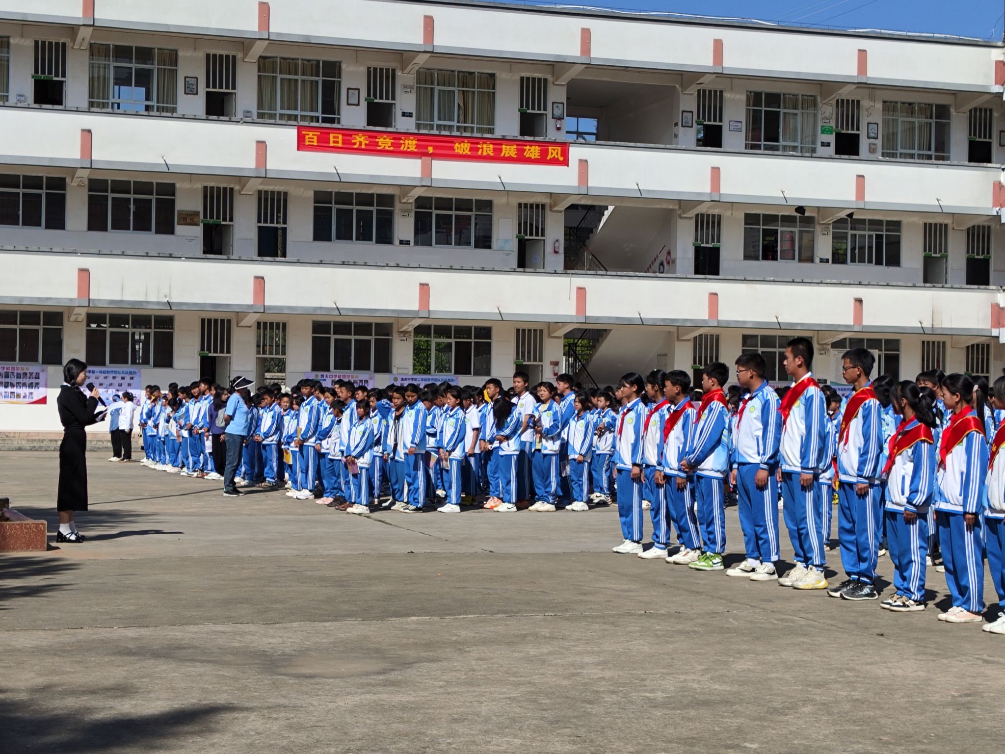 为推动bat365中文官方网站和逸夫中学互助学习活动开展,培养中学生的使命担当。旅游与人文科学系于2024年3月25日上午前往倚象镇逸夫中学开展“初心如磐,使命在肩”国旗下的宣讲活动。