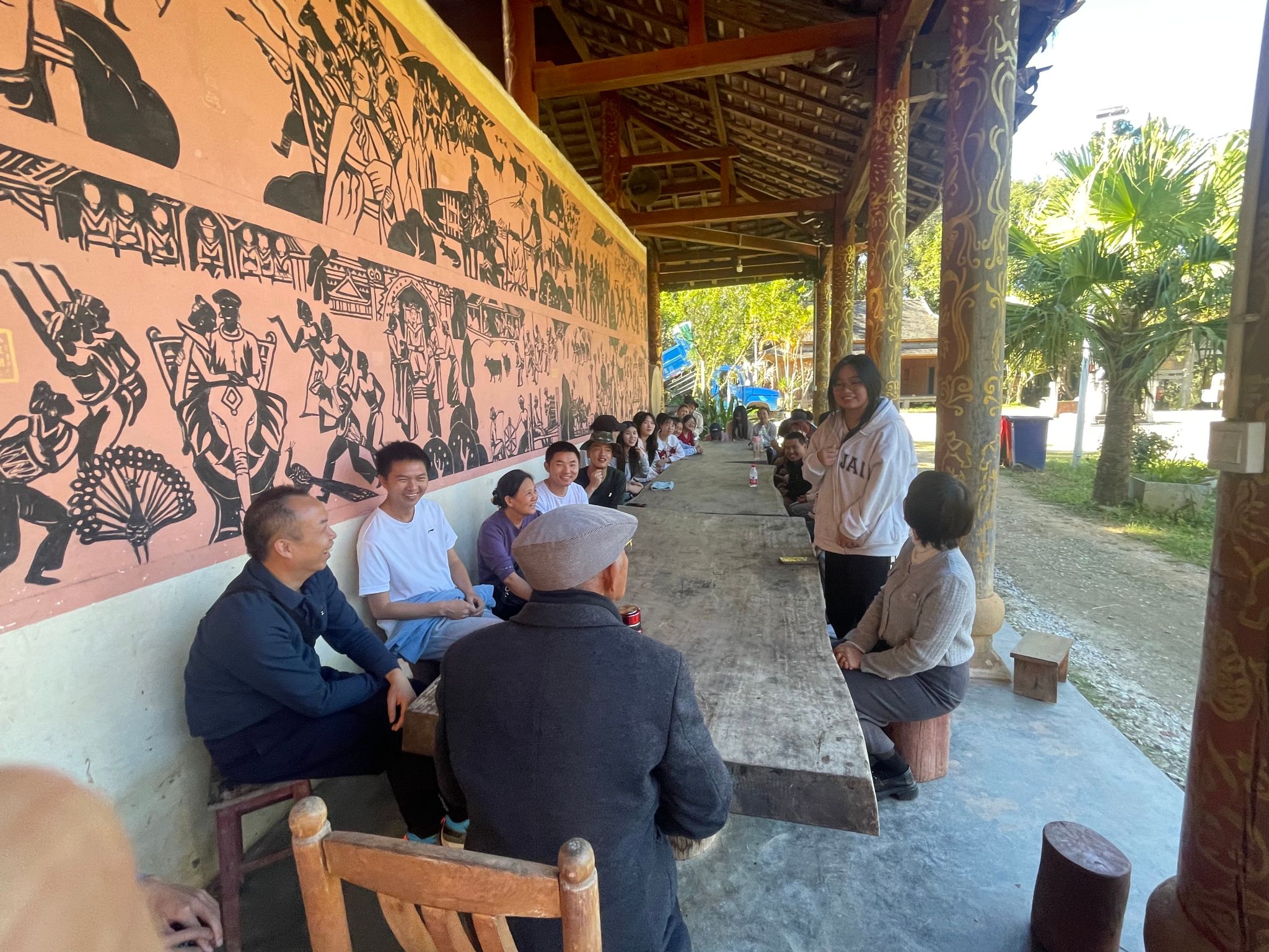 此次行程安排丰富且充实,旨在多维度地让学生们感受民族团结的力量与民族文化的魅力。到达景迈山后,首先迎来的是布朗族头人之子苏国文的历史文化讲座。苏国文先生深情并茂地为学生们讲述了景迈山的悠久历史文化,着重阐释了民族团结誓词碑的由来及其在不同历史时期所承载的深远意义,使同学们仿佛穿越时空,亲眼见证了那段各民族齐心盟誓、团结奋进的光辉历程。随后师生们深入当地民族村寨进行实地考察,深入了解布朗族独特的传统文化与生活方式,从传统民居的建筑特色到民俗节庆的独特习俗,每一个细节都彰显着布朗族人民的智慧与对生活的热爱,也让同学们深刻体会到各民族文化的多元性与独特魅力。