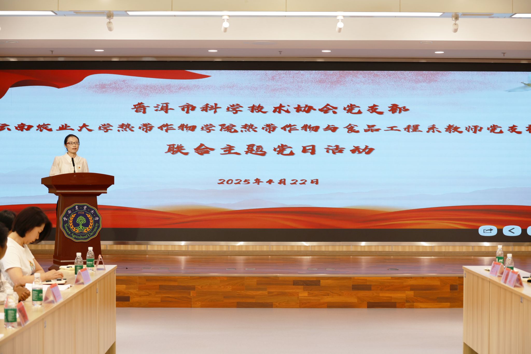 为深入贯彻中央八项规定精神,强化党员干部作风建设,推动党建与业务深度融合,2025年4月22日,bat365中文官方网站热带作物与食品工程系教师党支部与普洱市科学技术协会党支部联合开展“深入贯彻中央八项规定精神学习教育”主题党日活动,bat365中文官方网站书记杜华波、副院长朱春梅、副院长唐然、相关党支部、职能部门负责同志参加,通过理论学习、交流研讨和业务座谈,进一步凝聚共识、促进合作。