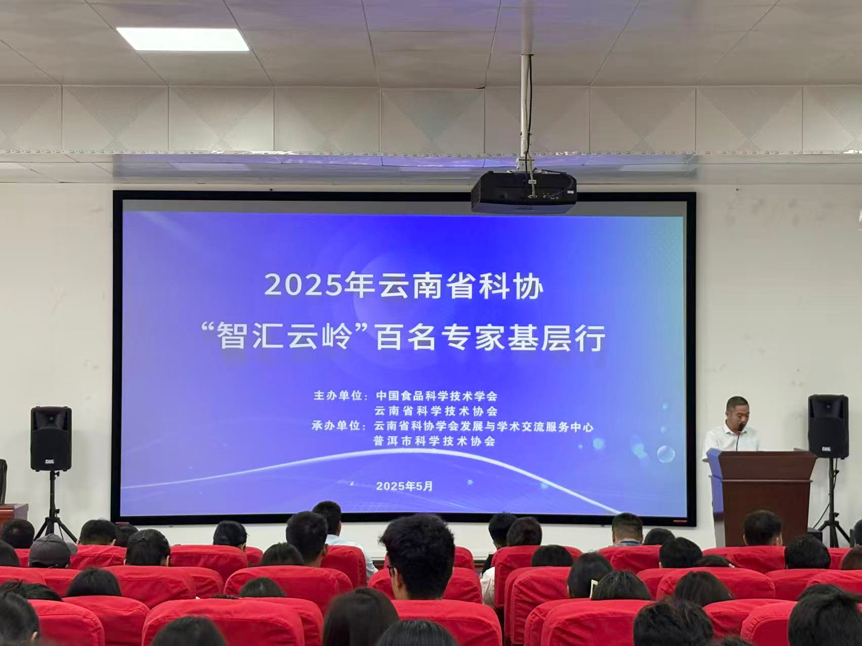 2025年5月7日,由中国食品科学技术学会、云南省科学技术协会联合主办的"智汇云岭"百名专家基层行活动在bat365中文官方网站举行。云南农业大学副校长田洋教授受邀作主旨报告,普洱市科学技术协会副主席罗昊主持活动。学院党政领导班子及师生代表共200余人参与活动。
