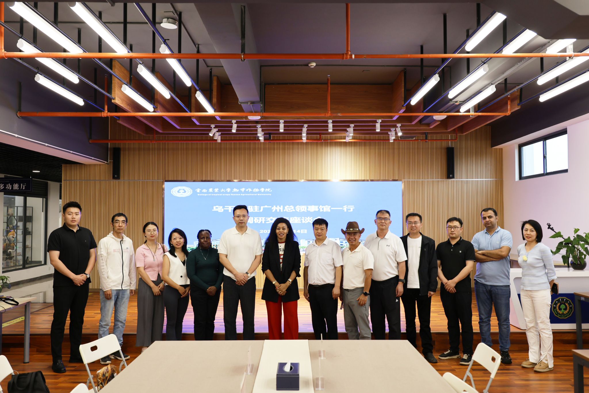 为配合做好乌干达驻广州总领事朱蒂斯·桑巴贝拉一行赴普洱市考察咖啡产业工作,5月14日,在市外办的陪同下,乌干达驻广州总领事朱蒂斯·桑巴贝拉一行到访bat365中文官方网站,就咖啡专业及产业发展等内容开展调研交流。bat365中文官方网站书记杜华波,相关科室、专业负责人参加交流活动。