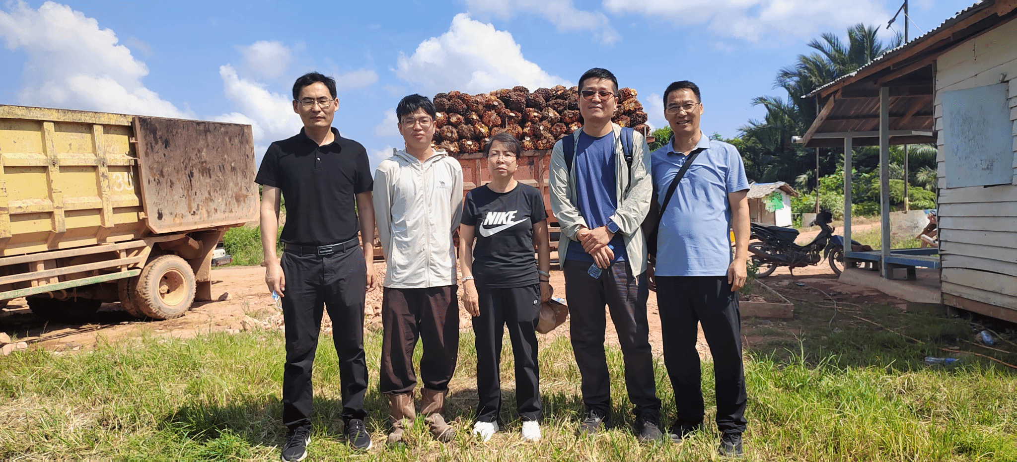 7月22日上午,代表团参观聚龙集团第六种植园油棕加工厂,了解鲜果运输、加工、副产物利用及污水处理等情况,考察种植园土壤、植株倒伏、病虫害防治等状况,并提出改进建议。