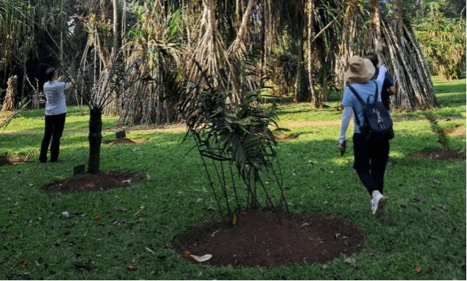 7月24日,代表团赴茂物植物园调查油棕、椰子、龙血竭等种质资源,为国内育种及产业升级提供支撑。
