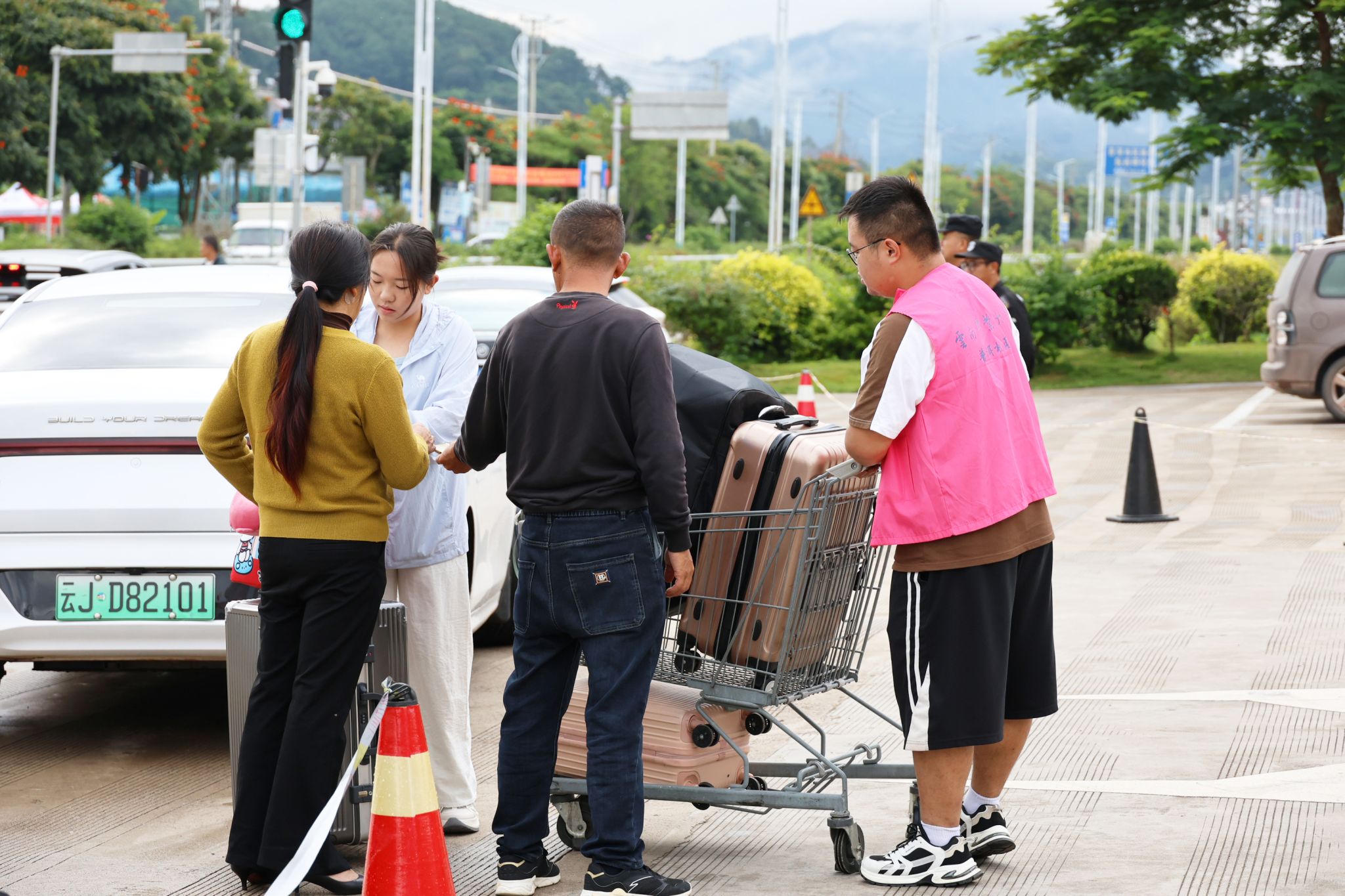 值得一提的是,报到区旁特意设置的 “清凉补给站”,让这份迎新关怀更添暖意。补给站不仅免费派发芒果、香蕉、杨桃等热带水果约2.5吨,均产自学院康平基地,让新生和家长收获开学首份 “热带清甜”;休息区还同步备好免费咖啡、茶水、甜品及冰镇饮料,以多元补给做好服务保障,将“云农大家庭”的温情落到实处。