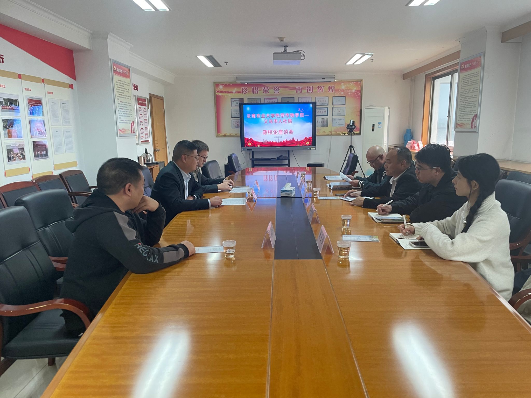 在义乌,团队与陆港区、人社局举行政校企三方座谈,就岗位对接、实习基地共建等达成共识。当地系统介绍电商产业优势与人才政策,为我校学生拓宽就业通道。团队还看望在岗实习生,开展座谈指导,组织在校生与实习生交流。