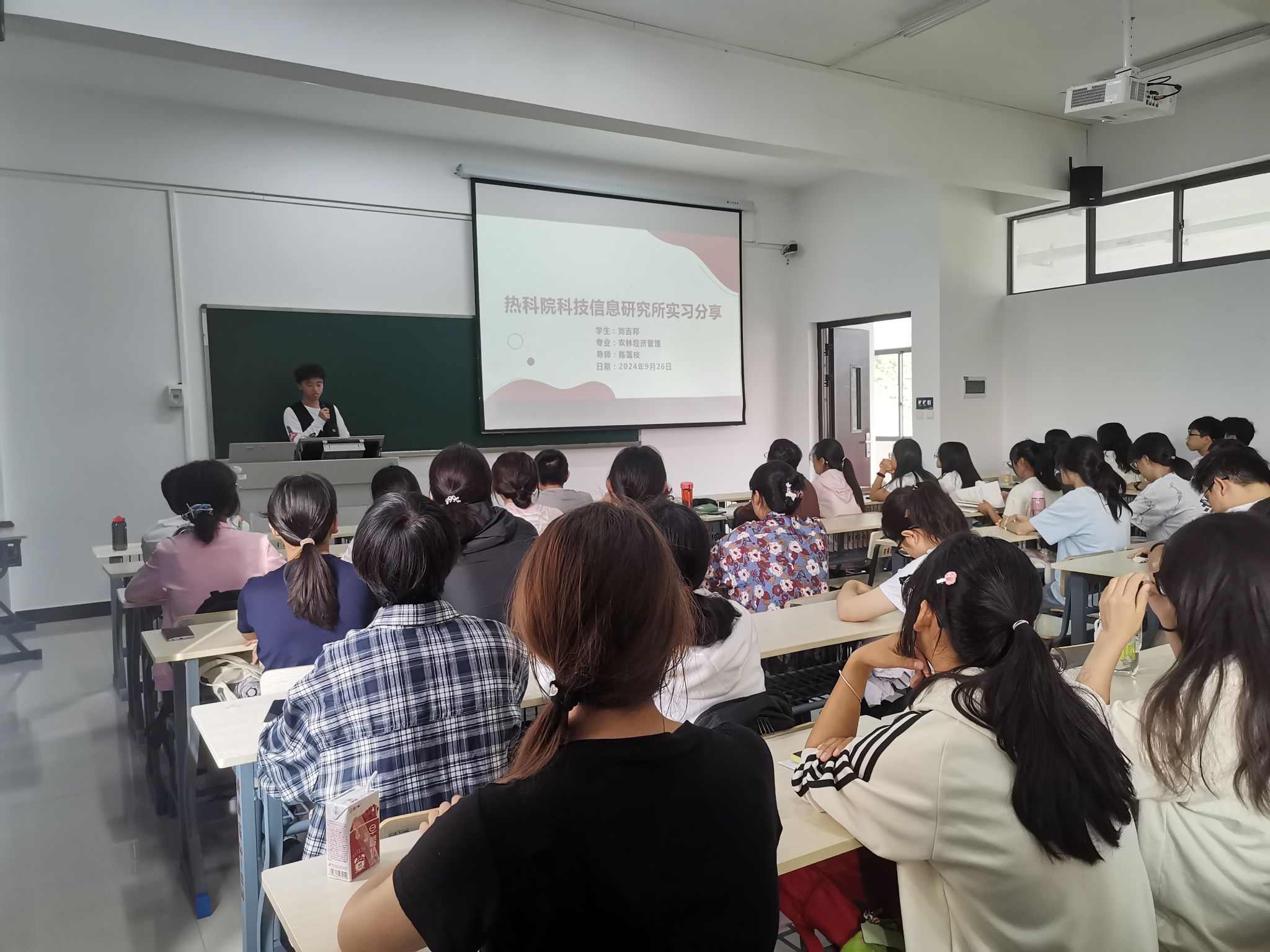 交流会上,在中国热科院实习的刘吉邦学长从工作总结、成果产出、毕业论文及实习收获四个方面分享了自己的实习生活,同时向大家讲述如何让自己的大学生活有意义,鼓励大家要努力为祖国农业农村发展做出自己的贡献。高冬见学长不仅讲述了自己在热科院的实习生活,还从专业学习、课外比赛、四六级考试等方面分享了自己的保研历程,并给出专业学习建议,同时希望24级农经学子能努力学习,早日实现自己的人生目标。三创赛国赛一等奖获奖者周静平和何苑溪学姐为大家讲述了参加校赛、省赛、国赛的经历,将参赛的宝贵经验倾囊相授,点燃了新生们的参赛热情和信心。