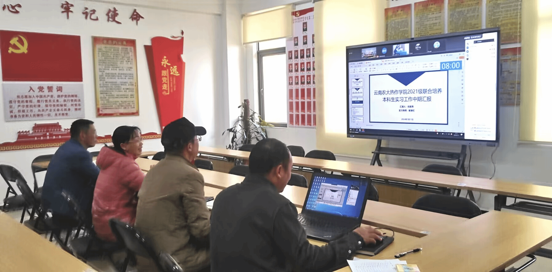 2024年1月11日上午,云南农业大学bat365中文官方网站与中国热带农业科学院科技信息研究所2021级联合培养本科生实习中期考评会以线上线下相结合的方式在海南海口和云南普洱同步举行,考评会由刘海清副所长主持,信息所联培导师、学院相关领导和负责人及全体实习生共30余人参加会议。
