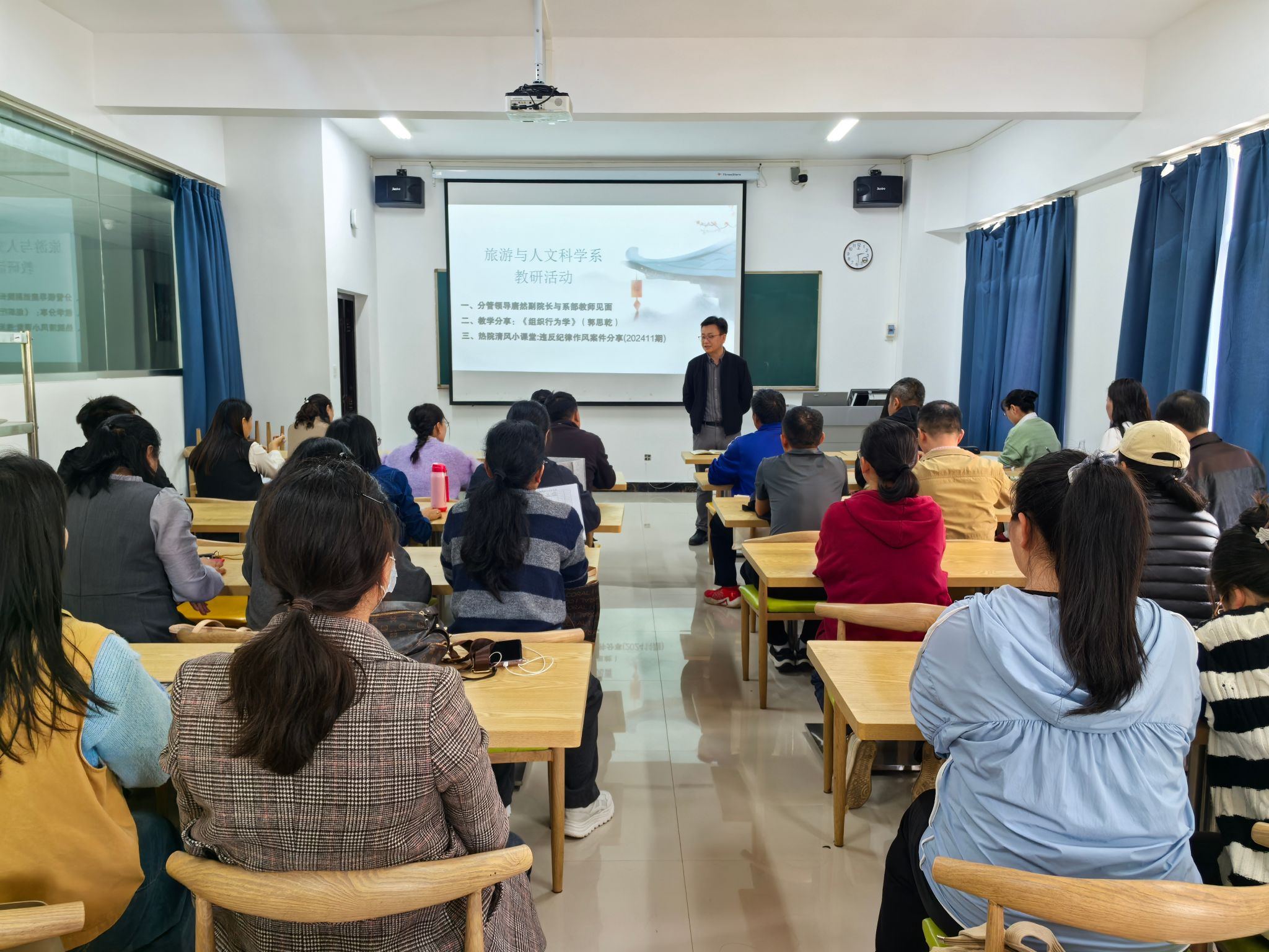 2024年11月20日下午,副院长唐然参加了旅游与人文科学系的教学会议,并与全体教师进行了亲切的交流,作为该系联系的院领导进行工作指导。