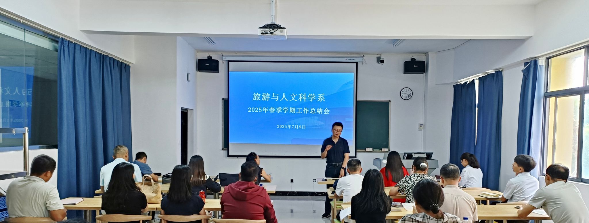 唐然副院长听取了总结汇报和大家的讨论发言,并发表了重要讲话。他首先对旅游与人文科学系本学期各项工作取得的成绩给予了充分肯定,并对全系教师的辛勤付出表示感谢。唐然副院长认为,旅游与人文科学系是一个具有温度、有氛围、有韧性、有态度的系部,同时针对“十五五”时期的发展,对系部老师提出了三个明确要求与殷切希望:一要坚持学习,每日积累提升履职精度;二要发扬韧劲,事不避难增强履职力度;三要换位思考,以人文关怀提升履职温度。 他强调,要以优良党风带动政风、教风、学风,将效能建设贯穿工作始终,多聚焦“重要但不紧急”的事,在学科建设、人才培养中实现新突破。唐然副院长的讲话为旅游与人文科学系的未来发展指明了方向,鼓舞了士气。系主任李昳华代表全系表示,将认真学习领会院领导指示精神,以此次会议为契机,扎实做好期末收尾工作,并组织力量深入研讨、精心编制“十五五”发展规划,凝心聚力,锐意进取,奋力开创旅游与人文科学系高质量发展新局面。
