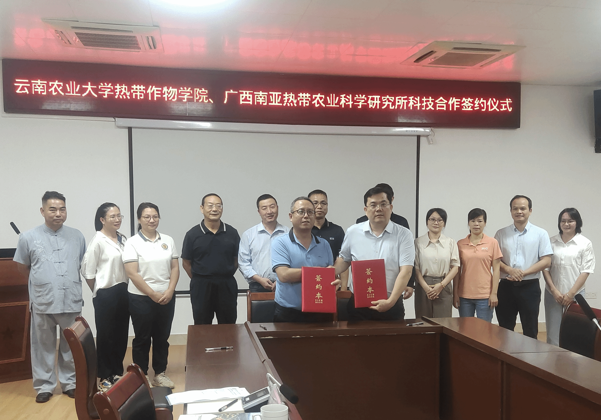 2024年10月23日上午9:30分,访问团与广西南亚热带农业科学研究所陈海生所长、覃振师副所长等11人进行座谈交流,双方在校所科技合作和学生实习等方面深入交换意见,双方确定并签订合作意向书。