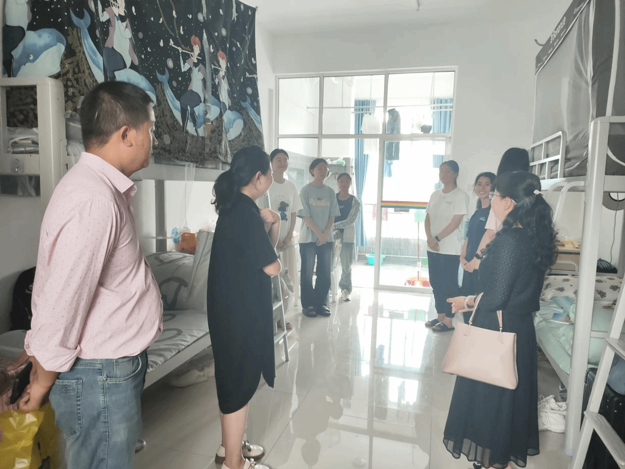 2024 年 9 月 7日,园林系副主任吴春燕老师,园林及风景园林专业负责人王永林老师和程双红老师一行去到学生宿舍看望2024级新同学。看望过程中,老师们与同学们亲切交谈,了解同学们的基本情况,包括家乡、兴趣爱好、对专业学习的期待和疑虑等,利用这次机会,老师还向新生强调宿舍安全、个人健康和心理健康的重要性,提供相关的资源和指导,如紧急联系方式、健康咨询渠道等,确保他们在校园内的安全。老师们的关心和嘱托让同学们深受感动,大家纷纷表示,一定会牢记老师们的教导。