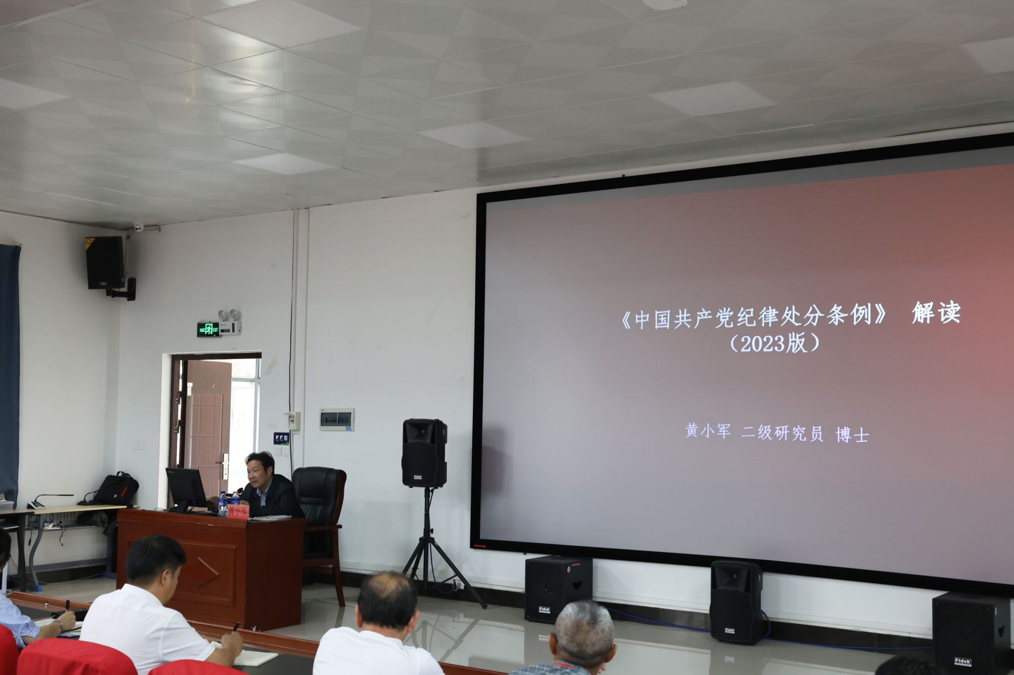 黄小军首先指出自党的十八大以来,中国共产党先后于2015年、2018年、2023年3次修订《中国共产党纪律处分条例》(以下简称《条例》),向全党释放了全面从严治党永远在路上的强烈信号;其次,他从准确把握党纪学习教育的要求、准确把握《条例》新增或修改的重点条文、准确把握《条例》的主旨要义三个方面深入解读了《中国共产党纪律处分条例》(2023版),紧扣党的政治纪律、组织纪律、廉洁纪律、群众纪律、工作纪律、生活纪律,结合工作实际,提出加强纪律建设是全面从严治党的治本之策,从严治党靠的是党的纪律和规矩,每一名党员都应坚定政治信仰与理想信念,坚持党性党风党纪一起抓。