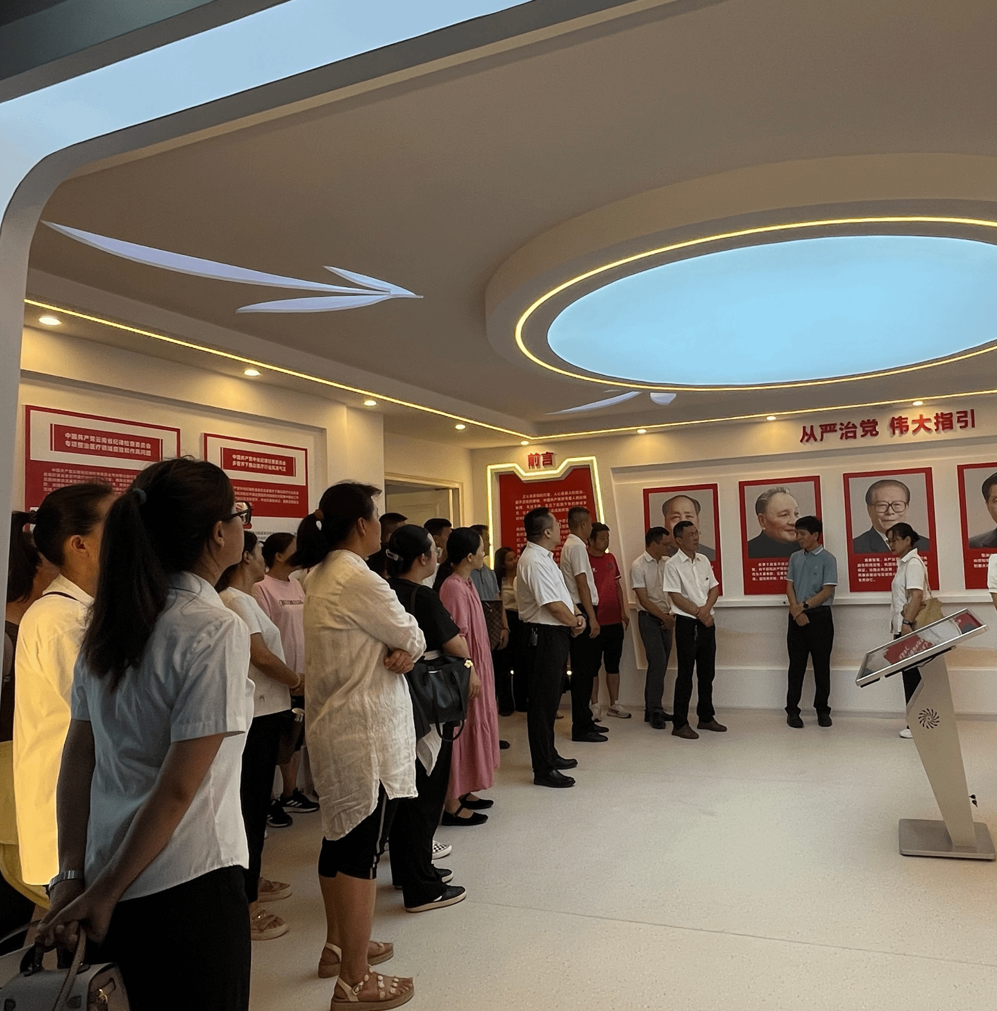活动伊始,讲解员带领大家在序厅观看警示教育片,深入剖析了腐败行为产生的根源和严重后果,给大家带来了强烈的心灵震撼。其次,观看切实发生在身边的卫健系统内部的警示案例,全体参观人员从这些案例中吸取教训,时刻高悬利剑保持清醒的头脑,照镜子正衣冠并自觉抵制各种诱惑,做到警钟长鸣。最后,参观阳光厅内展示的卫生健康系统的先进典型代表的先进事迹。