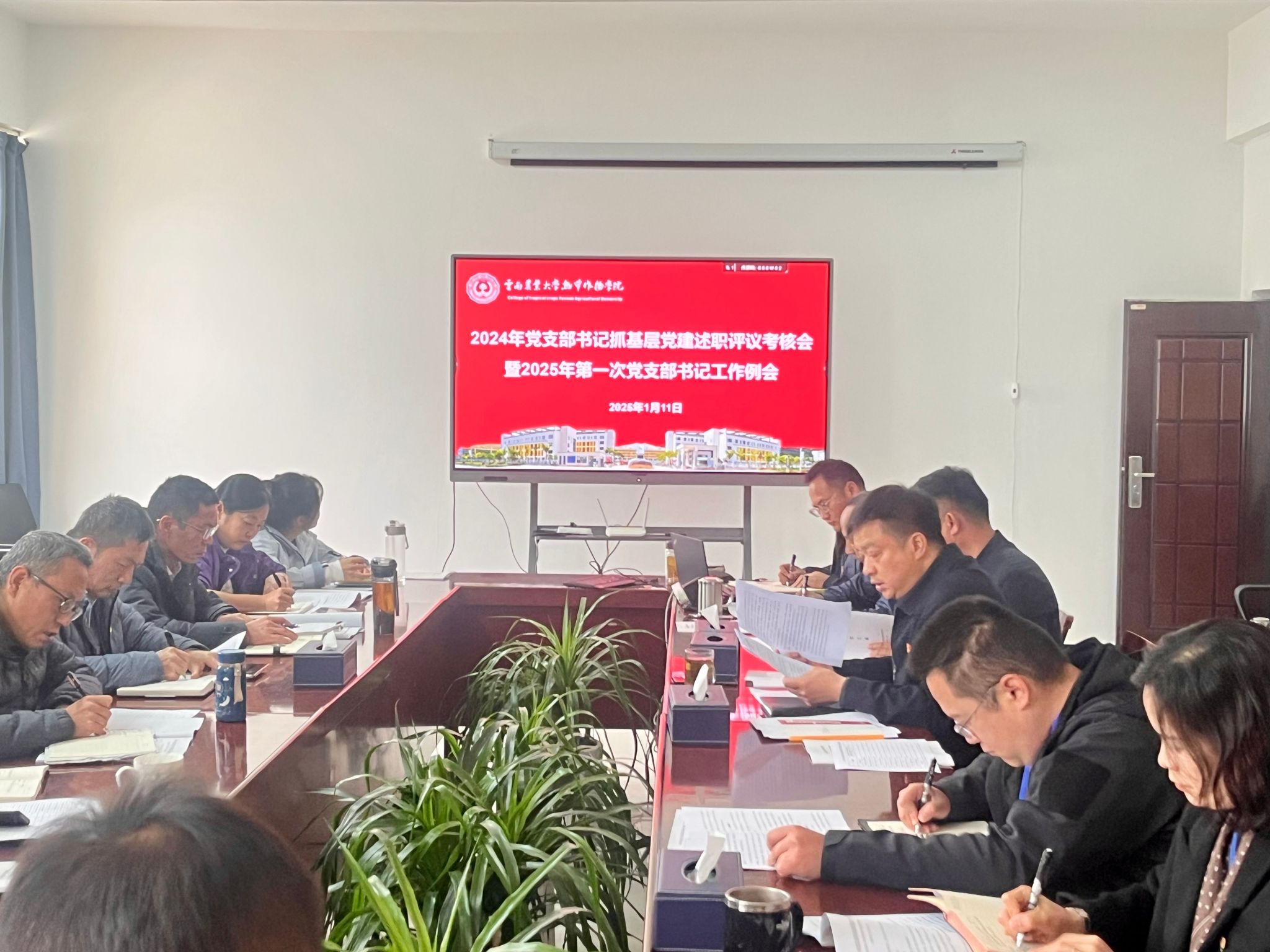 杜华波指出,2024年学院各支部按照学校党委部署要求,聚焦落实全面从严治党主体责任,扎实开展党纪学习教育,狠抓年度党建重点工作任务落实落地,深化“一融双高”建设,思想政治建设不断加强,党建引领作用有效发挥,党风廉政建设取得成效,推动学院各项事业取得了新进展、呈现出新气象。在总结工作成效的基础上,杜华波书记提出各党支部要进一步深化理论学习,落实“第一议题”制度要求,及时学习党的创新理论知识,坚持以学铸魂,不断提升政治理论水平,推动党纪学习教育常态化;二是聚焦“一融双高”建设,推动党建工作与中心工作深度融合,坚持目标同向、部署同步、工作同力,以高质量党建引领学院高质量发展取得实效;三是要做好“党建+”文章,力争打造热院党建品牌。