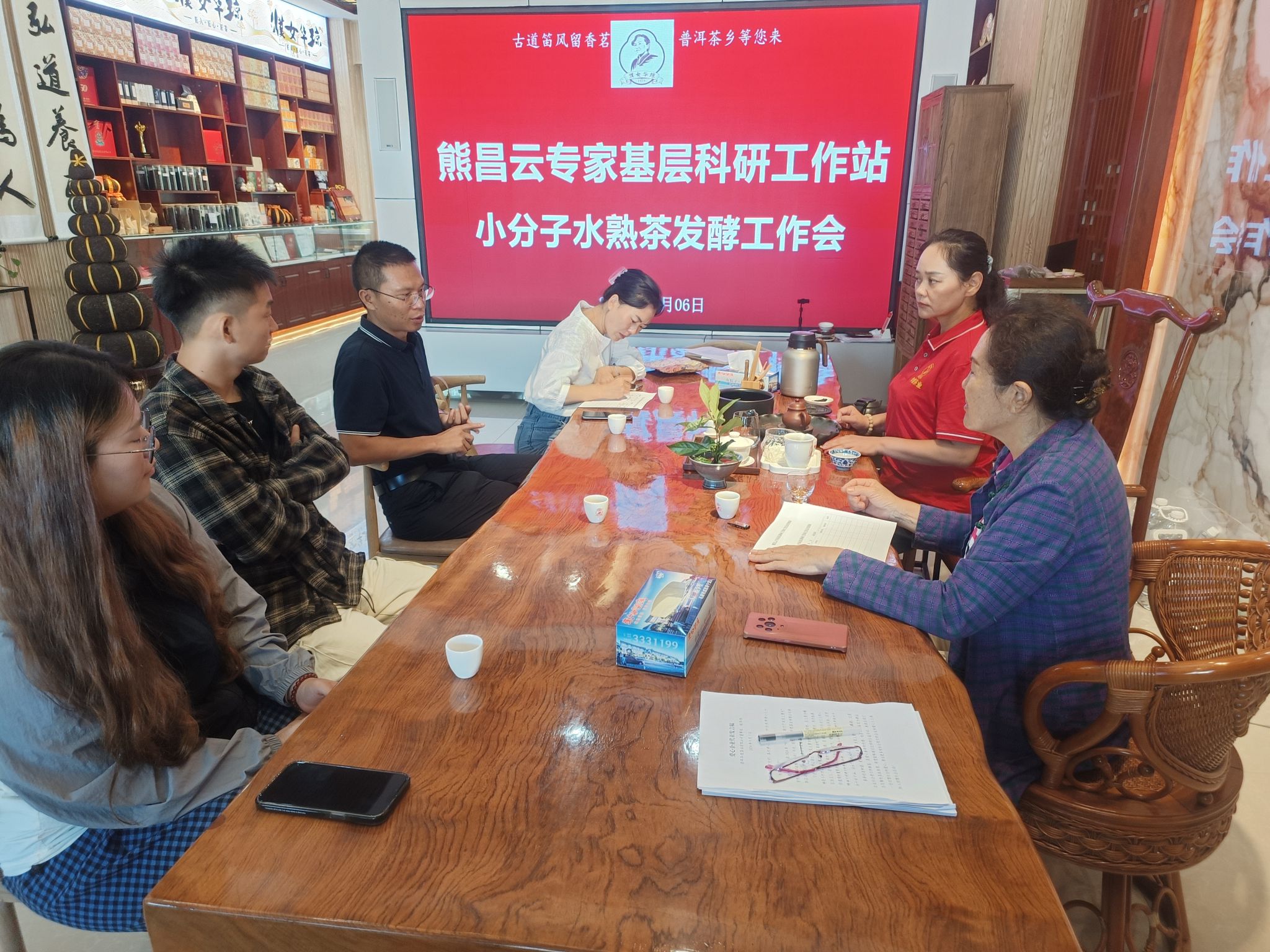 科技服务团队联合云南天士力帝泊洱生物茶集团有限公司、滇西应用技术大学普洱茶学院、普洱市职业教育中心等教师及科技人员,依托云南省委组织部熊昌云专家基层科研工作站科研平台共同对普洱华煜茶业有限公司开展的小分子水发酵普洱熟茶工艺进行了深入探讨,并提出了相应的意见和建议。