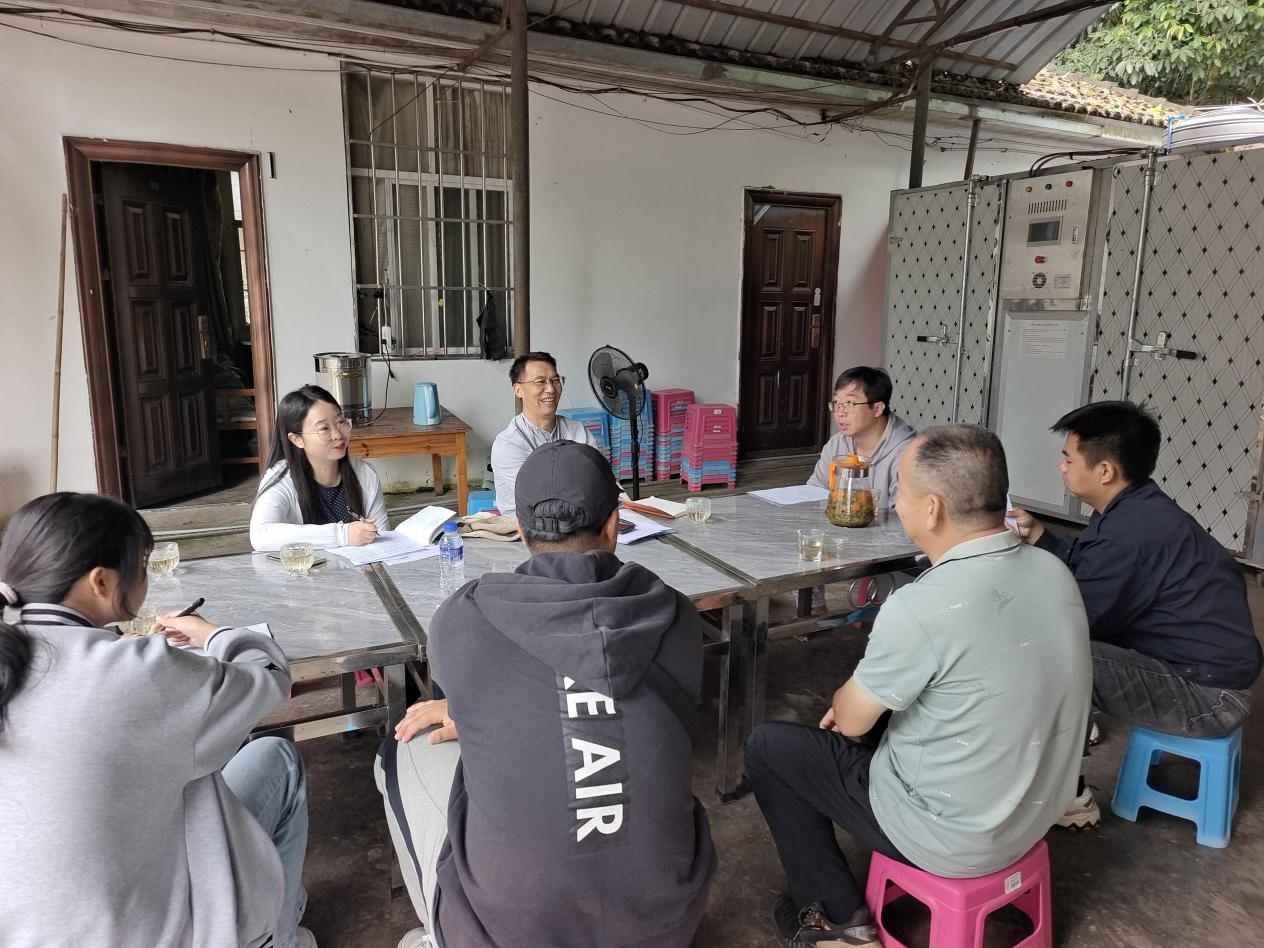 服务组一行与学院帮扶点双相驻村干部就近期开展中共普洱市委农村工作领导小组关于建立农村脱贫人口和监测对象重点群体“一对一”包保帮扶机制落实、学院帮扶橡胶林下赤松茸种植、美丽乡村文化建设等情况进行了调研和指导。