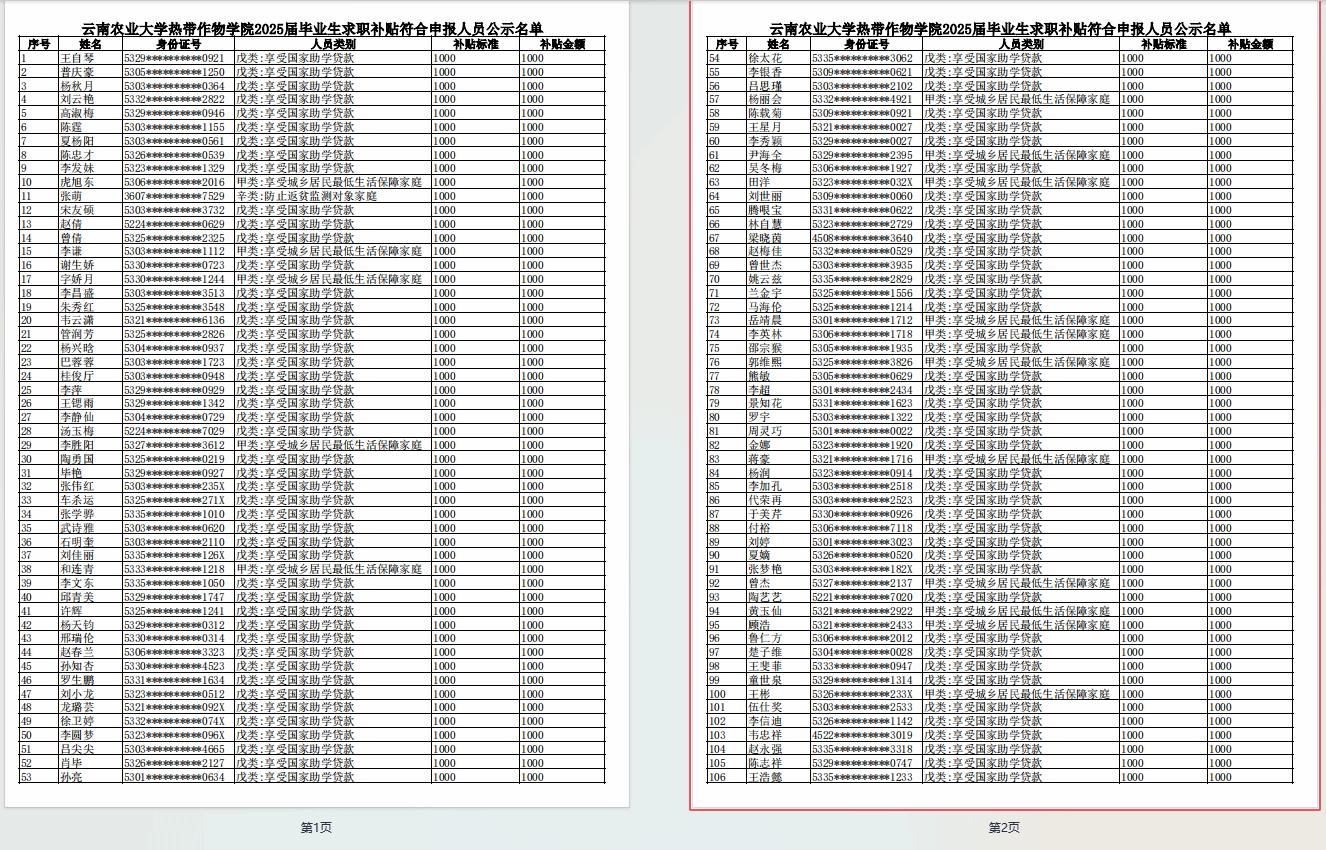 根据财政部人力资源社会保障部关于印 发〈就业补助资金管理办法〉的通知》(财社〔2023〕181 号)、 《云南省人力资源和社会保障厅 云南省教育厅 云南省财政 厅 云南省公安厅 云南省民政厅 云南省农业农村厅 云南 省残疾人联合会关于做好高校毕业生一次性求职补贴发放工作 的通知》(云人社通〔2024〕17号)文件要求,学院认真贯彻落实高校毕业生求职创业补贴申请专项工作,现将2025届毕业生求职补贴符合人员申报公示名单公示如下(见附件),公示期自即日起五个工作日,公式无误后报普洱市公共就业和人才服务中心审核批准。凡对以上结果存在异议,请以实名制书面形式向学生科反应,联系电话0879-3028687。