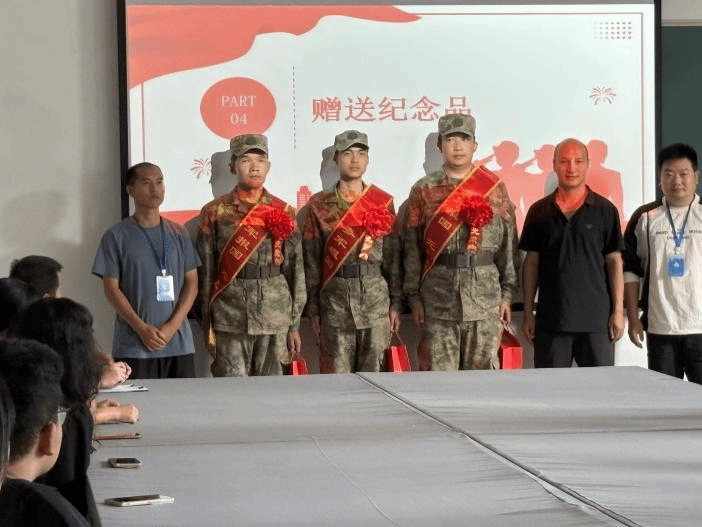 2025年9月11日,秋高气爽,情谊浓醇。学生活动中心2楼2-5会议室内掌声阵阵,一场热烈而庄重的新兵入伍欢送会在此温情举行。学院学工办部门负责人李俊伟老师、副主任王喜老师、分管就业创业工作的张川、团委书记张涵老师、新兵所在班级辅导员、退役学生代表、军事爱好协会及部分学生代表聚一堂,为我院即将身着戎装、踏上军旅征程的3名热血青年们送行,共同见证他们从校园学子向革命军人转变的重要时刻。