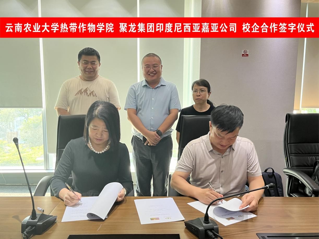 2024年10月4日下午2点30分,访问团与聚龙集团印度尼西亚嘉亚公司印尼区董事长张冰、运营董事雷文忠等人座谈交流,共同确定科技培训等相关工作的部署及安排,就热带作物生产示范基地建设达成合作,为下一步云南农业科技走出去打下坚实基础。同时,在人才培养与就业方面,公司提供生产管理技术岗位10余个;同意参与学院《热带作物产品加工学》《热带作物栽培学》等课程建设或到校开展油棕产业相关的技术讲座;就国际科技项目合作达成意向,双方同意共同申报“建设面向南亚东南亚科技创新中心专项”项目中的“云南省国际联合创新平台”和“云南省国际科技特派员”等项目。最后,双方确定并签订了合作意向书。