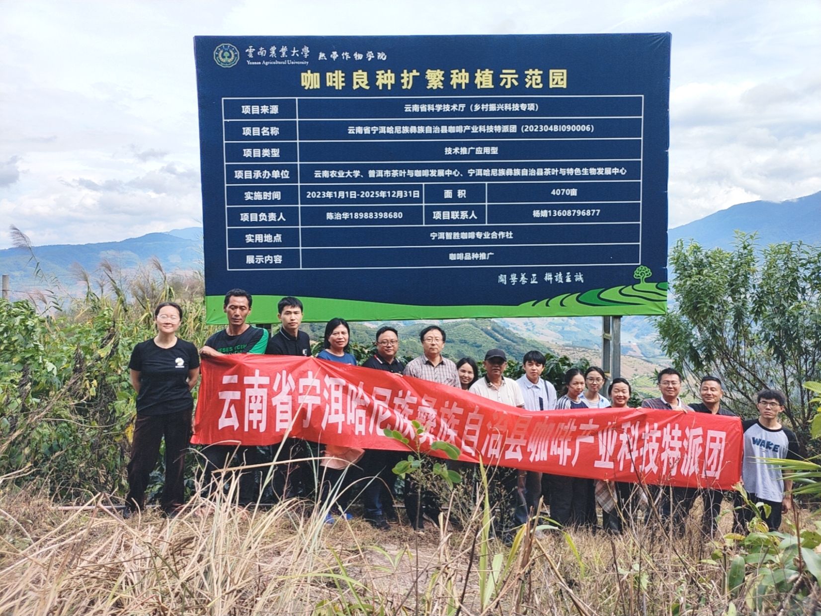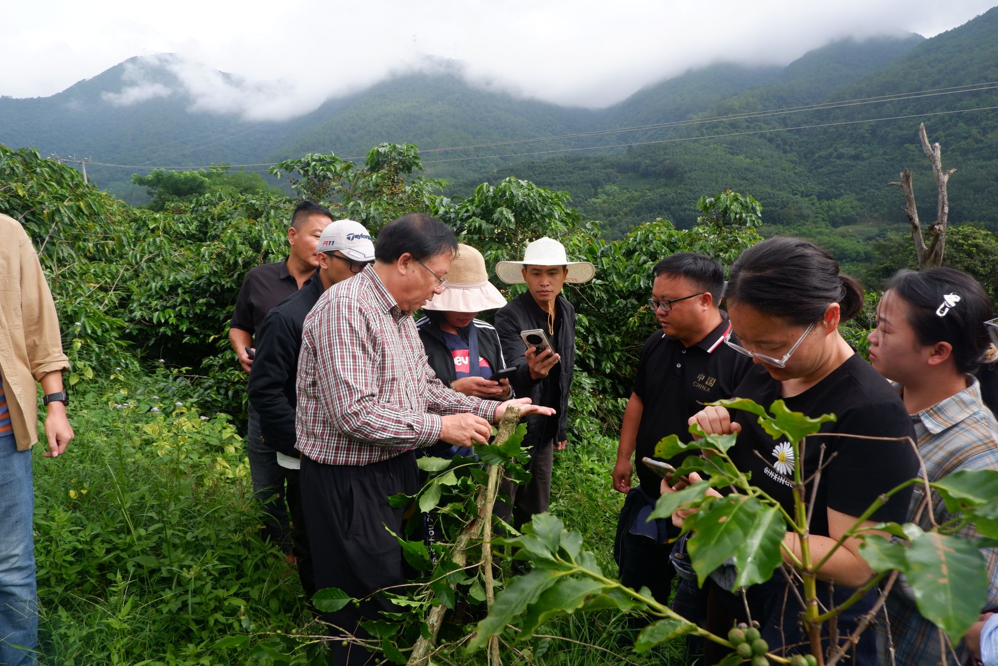 在宁洱县磨黑镇、梅子镇与普义乡三地,农户以种植咖啡为主,但多数是原始的传统种植方式,咖啡产量和质量不高,品质得不到保障。根据种植户的实际情况,特派团针对农户在咖啡科学种植及病虫害防治方面加强了理论现场培训和指导。特派团在磨黑镇瑰夏庄园咖啡栽培基地、梅子镇民乐咖啡专业合作社、普义乡智胜咖啡合作社和江西村咖啡种质资源圃进行实地考察,就当地农户种植的咖啡的精准施肥、病虫害绿色防控和高效栽培等关键技术进行深入交流,并对咖啡病虫害防治、中低产咖啡园改造、咖啡种质资源圃及生态咖啡园的建立作进一步指导。