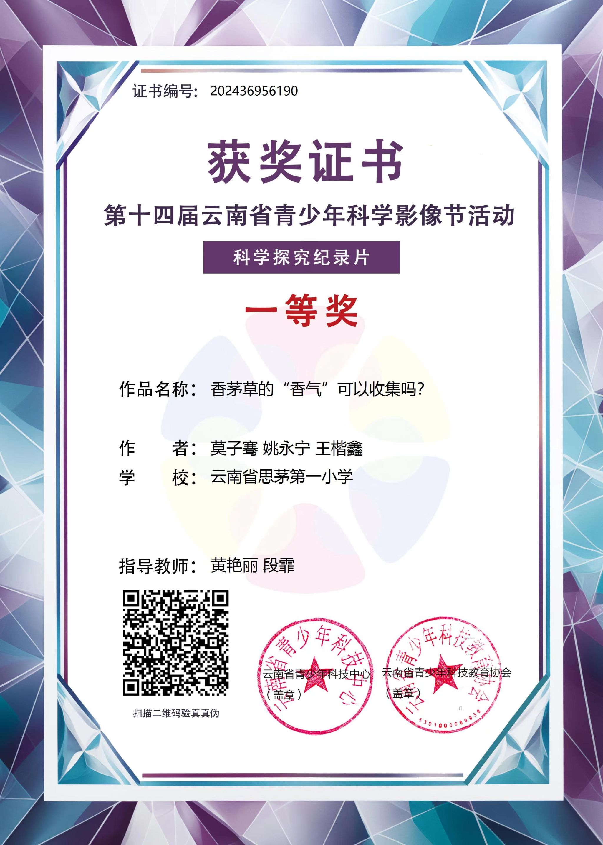 据悉,第十四届全国青少年科学影像节展映展评活动由中国青少年科技教育工作者协会主办,中国科教工作者协会科学传播工作委员会和《中国科技教育》杂志社承办,得到中国科技发展基金会、中国电影家协会、新华网、央视频的大力支持。本次活动自启动以来,共征集到科学影像作品1110部,云南省共有5部作品入围全国决赛,《香茅草的“香气”可以收集吗?》是其中之一。