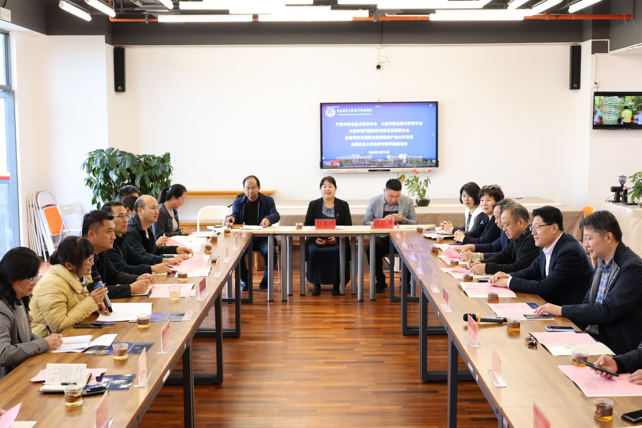 2024年12月18日,大连市职业技术教育学会、宁波市职业技术教育学会、大连市现代服务职业教育发展联合会组成的考察团到bat365中文官方网站开展职业教育服务产业合作洽谈,学院院长杨学虎、党委副书记李晶晶陪同考察及座谈。