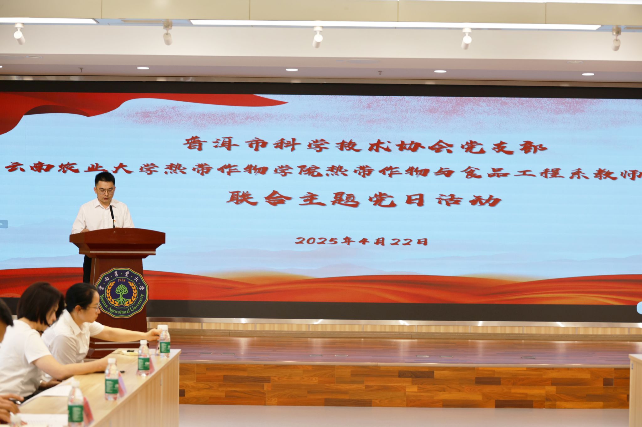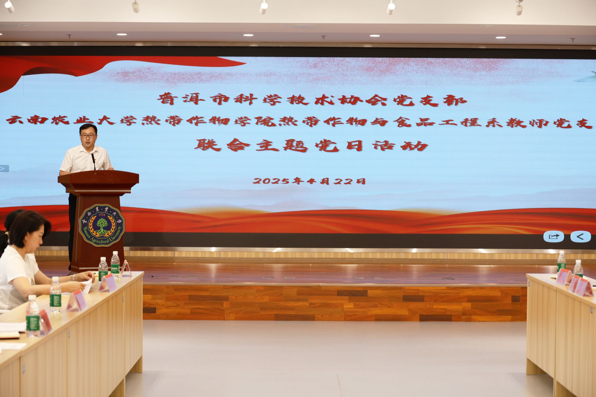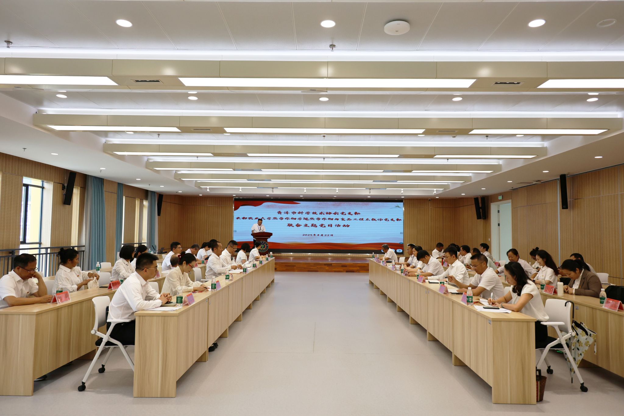 为深入贯彻中央八项规定精神,强化党员干部作风建设,推动党建与业务深度融合,2025年4月22日,bat365中文官方网站热带作物与食品工程系教师党支部与普洱市科学技术协会党支部联合开展“深入贯彻中央八项规定精神学习教育”主题党日活动,bat365中文官方网站书记杜华波、副院长朱春梅、副院长唐然、相关党支部、职能部门负责同志参加,通过理论学习、交流研讨和业务座谈,进一步凝聚共识、促进合作。