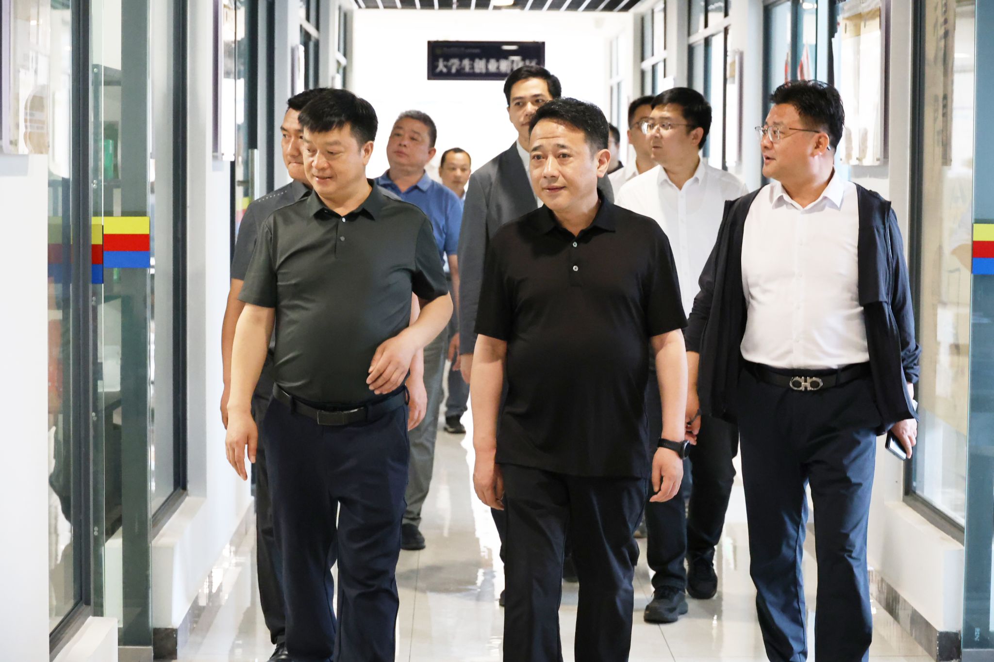 潘恩华详细了解了大学生创业园的运行情况以及在实践教学中的应用情况,对学院注重学生实践能力培养的做法给予了高度评价。他表示,此次调研旨在推动区域与高校在人才培养、产业对接等方面的交流合作,加强区域产业的技术创新和发展,为金山区产业升级和学院人才输出搭建更坚实的桥梁。