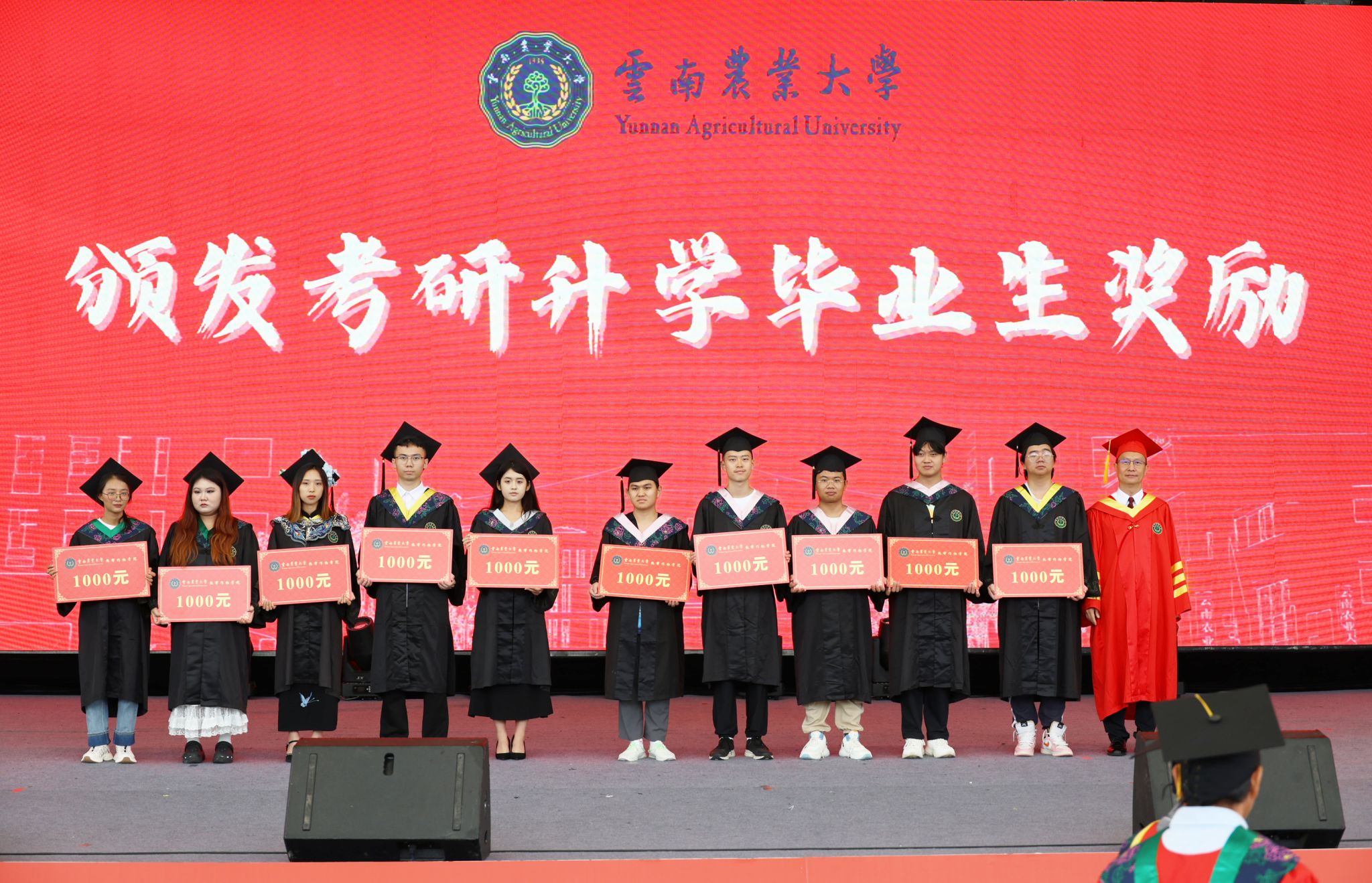 随着学校毕业典礼画面的结束,学院学位授予仪式正式开始,副校长李宏带领学院党政领导班子为表现突出的优秀毕业生颁发证书,对考取研究生的学子给予嘉奖,彰显榜样力量;为“云农信使”颁发聘书,激励他们成为传递母校情谊、展现云农风采的使者;为毕业生们逐一拨正流苏、颁发学位证书并合影留念,祝福毕业学子展翅高飞,开启人生新的旅程。