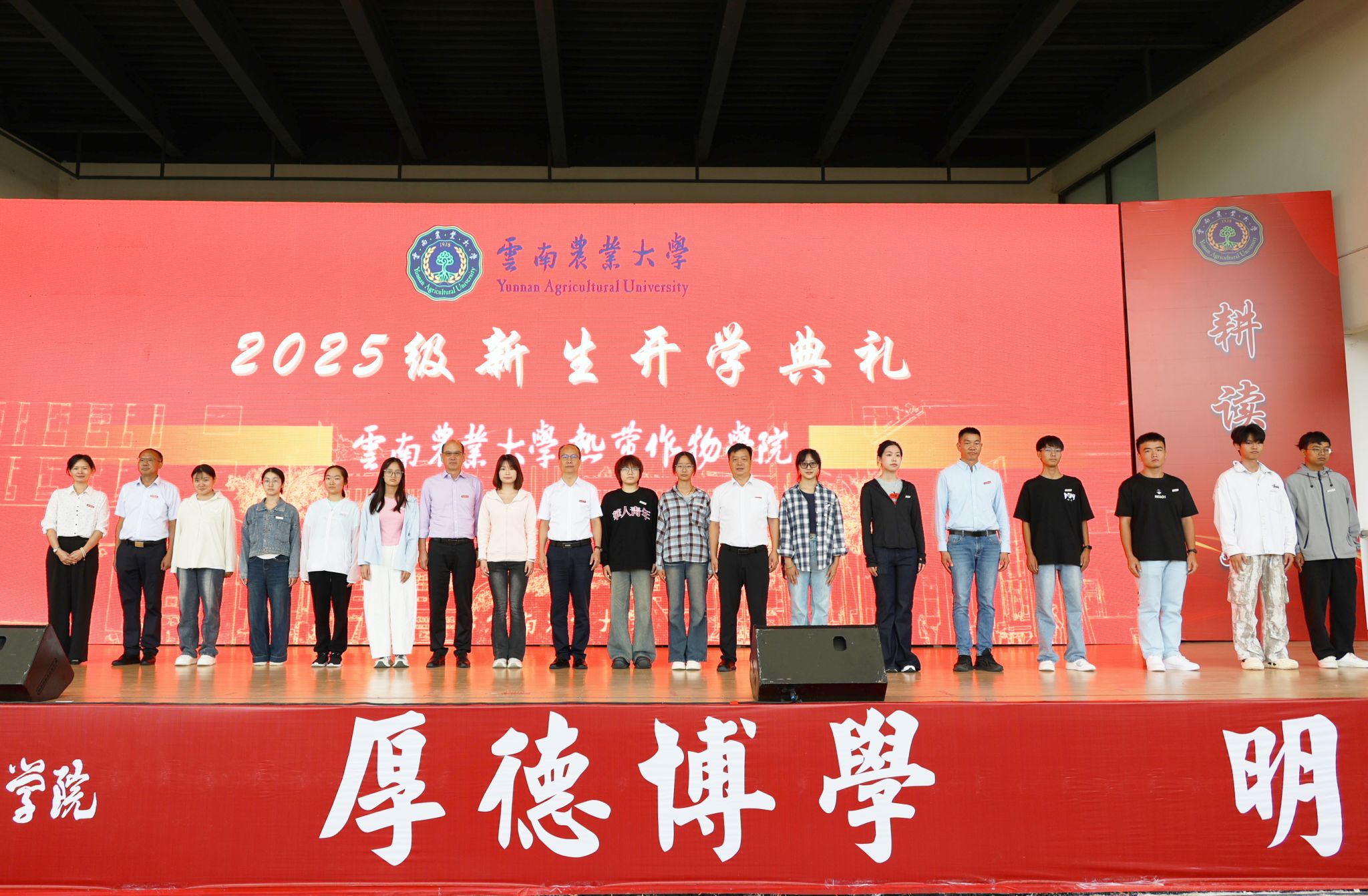 开学典礼上,参会领导为新生代表佩戴校徽,这枚校徽不仅是云农人的身份象征,更意味着云南农业大学办学精神的传承与弘扬,还对获得学院“五育之星”称号的10名学生进行了颁奖。