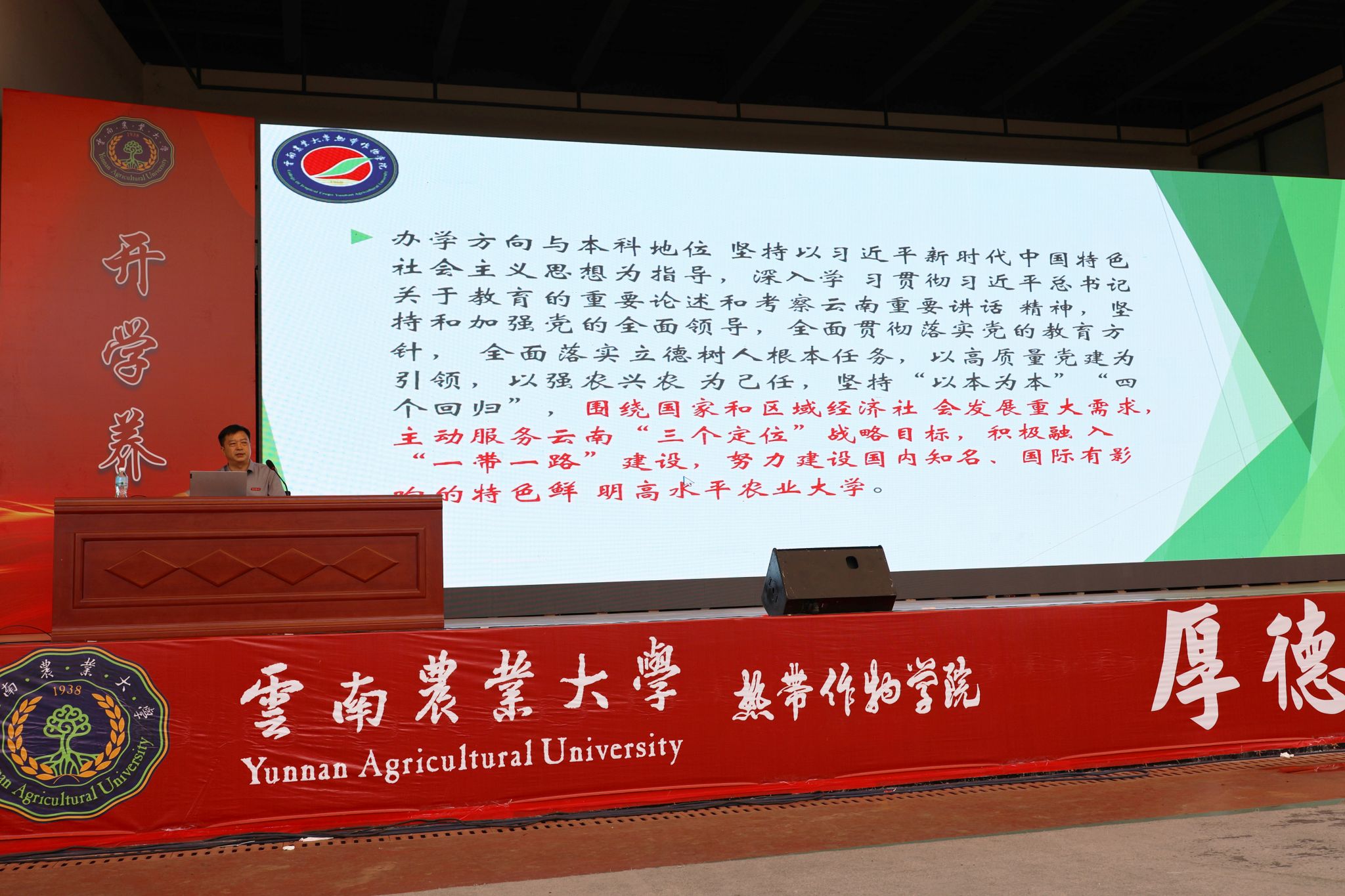 李宏代表学校,向新生讲述了学校在农业教育、科研与服务国家战略中的历史贡献和独特地位,介绍了bat365中文官方网站办学历史、使命传承及特色学科建设。