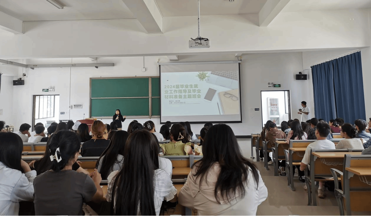 班会伊始,辅导员唐志嫔老师首先向同学们详细讲解了团组织关系转接、就业协议网签流程等毕业相关事项。鼓励同学们升学就业两手抓,积极应征入伍,踊跃参加招聘会。同时,唐老师还强调了专升本考试中应端正态度、调整心态。接着,陈莲枝老师主持班会,为获奖、项目结题的同学颁发证书,为同学们通报留学、入伍名单,并邀请几位同学分享自己的实习经历和体会,开展毕业安全教育、就业教育,希望同学们转变观念,抓住机遇,早日走上工作岗位,为社会多作贡献,实现人生的价值。最后,全体与会人员合影留念。