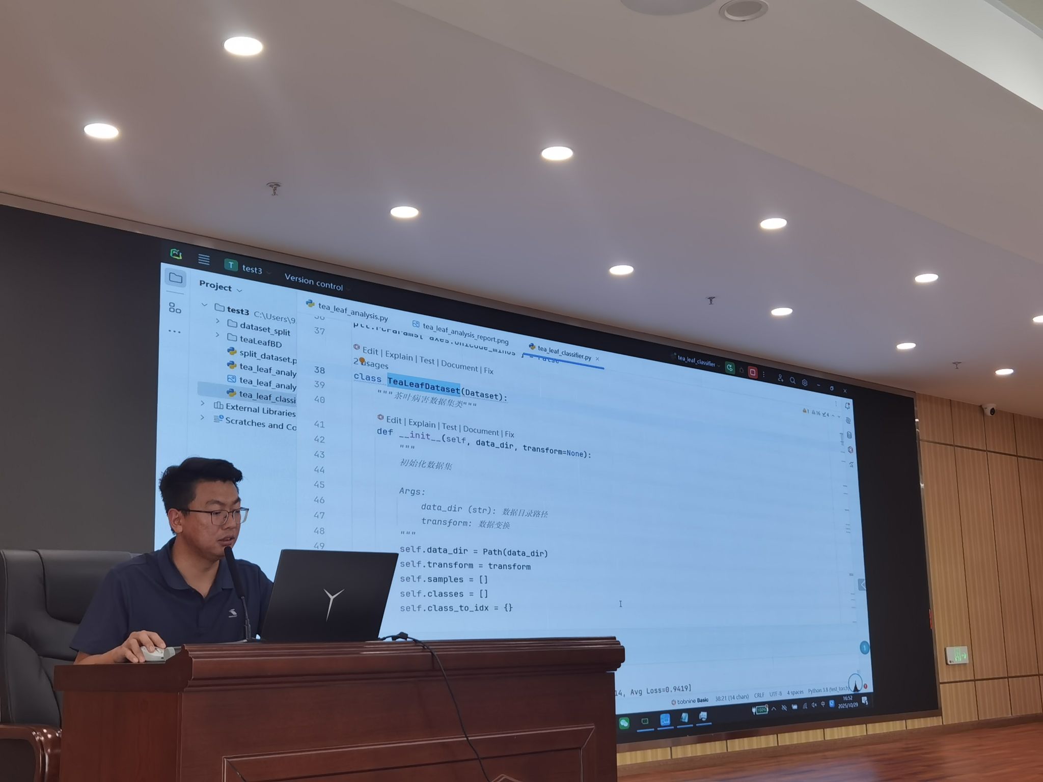 随后,刀加旭主讲的“AI 辅助编程实践:基于深度学习的茶叶病害图像分类”讲座精彩呈现。讲座以茶叶病害图像分类为实践案例,深入探讨了AI辅助编程在项目开发中的实际操作流程。刀加旭首先阐述了茶叶病害识别对农业生产的关键作用,接着详细解析了基于深度学习的图像分类技术原理,涵盖数据集构建、模型选择(如CNN卷积神经网络)、模型训练与优化等核心环节。讲座中,他通过现场演示,生动展示了如何运用AI辅助编程工具高效完成数据预处理、模型搭建与测试等步骤,并分享了项目开发中的挑战及应对技巧。现场师生对AI技术在农业及其他行业的应用获得了更深层次的理解。
