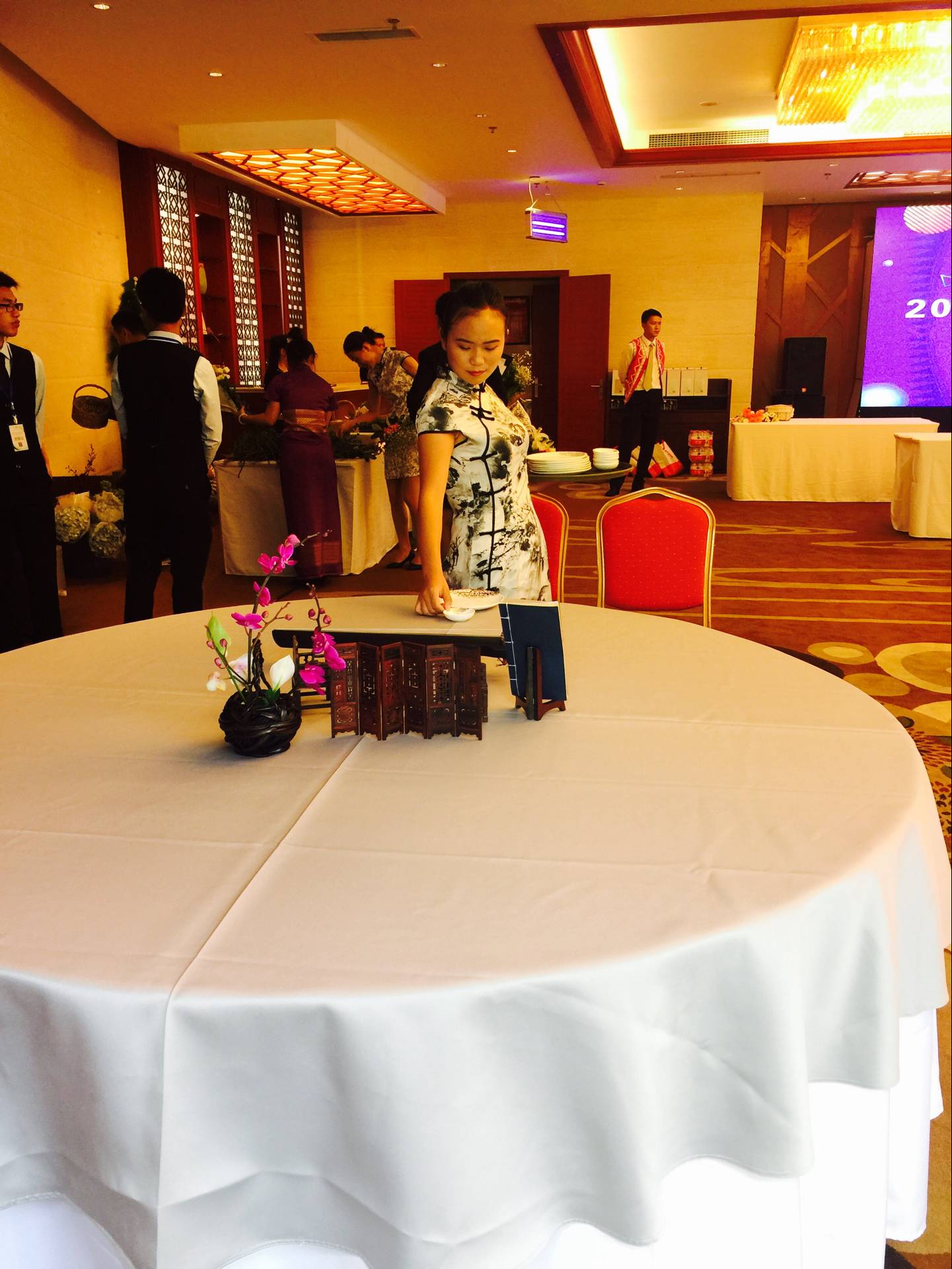 酒店管理与数字化运营专业学生在普洱开元梅子湖温泉酒店技能大比武中进行技能展示